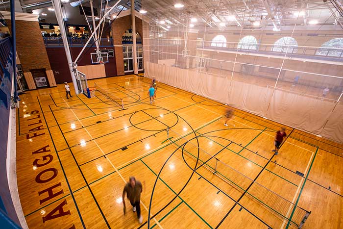 The Main Gymnasium can be used for basketball, volleyball, pickleball, fitness programs and community events, sports clinics and camps, and a host of other activities.