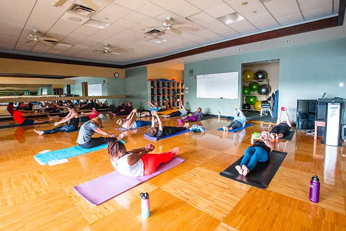 Join in on a class in one of our group fitness rooms, located just past the interactive tree area. Group Fit Room B features sports parquet flooring and hosts a variety of classes including Drum, Zumba, Strength, Bootcamp & Yoga. Fit Kid classes are held in these rooms during the week, as well as other special programming. Group Fit Room A hosts our Spinning classes. Check out the land fitness schedule for more details on the classes provided.